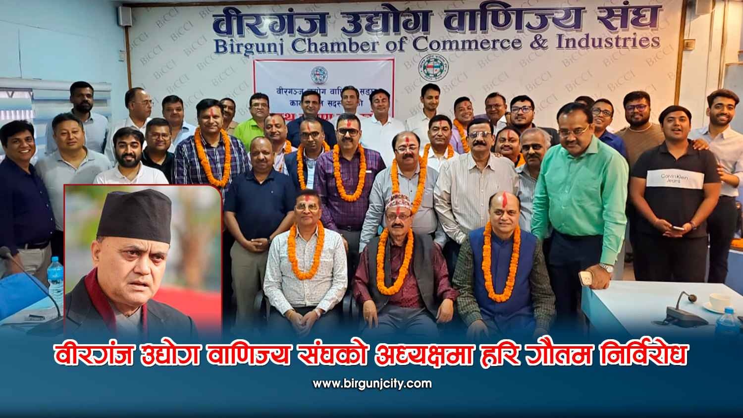 वीरगंज उद्योग वाणिज्य संघको अध्यक्षमा हरि गौतम निर्विरोध निर्वाचित भएका छन् । संघको पदाधिकारी निर्वाचन सर्वसम्मत रूपमा सम्पन्न भएको हो ।