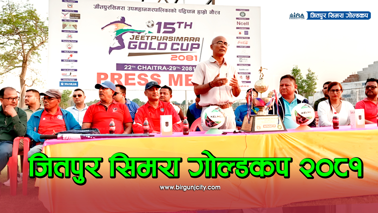 मोफसलकै प्रतिष्ठित फुटबल प्रतियोगिता १५औं संस्करणको जीतपुरसिमरा गोल्डकप चैत २२ गतेदेखि सुरु हुने भएको छ । आयोजक नव जनजागृति युवा क्लबले मंगलबार पत्रकार सम्मेलन गर्दै प्रतियोगिताबारे जानकारी गराएको हो ।