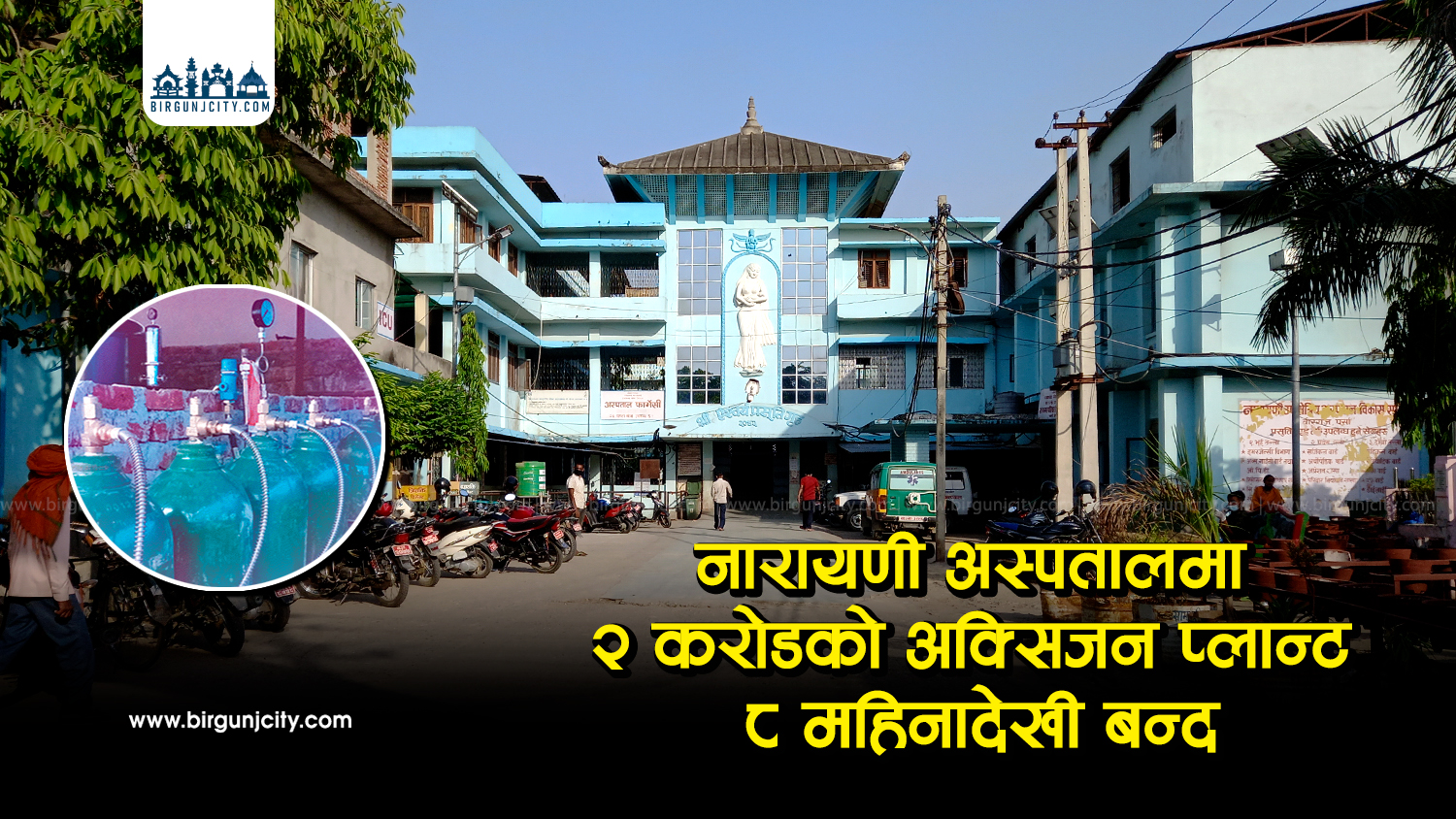कोरोना महामारीको समयमा तत्कालीन सांसद विमलप्रसाद श्रीवास्तवको पहलमा नारायणी अस्पताल, वीरगंजमा जडान गरिएको अक्सिजन प्लान्ट विगत आठ महीनादेखि बन्द अवस्थामा रहेको छ ।