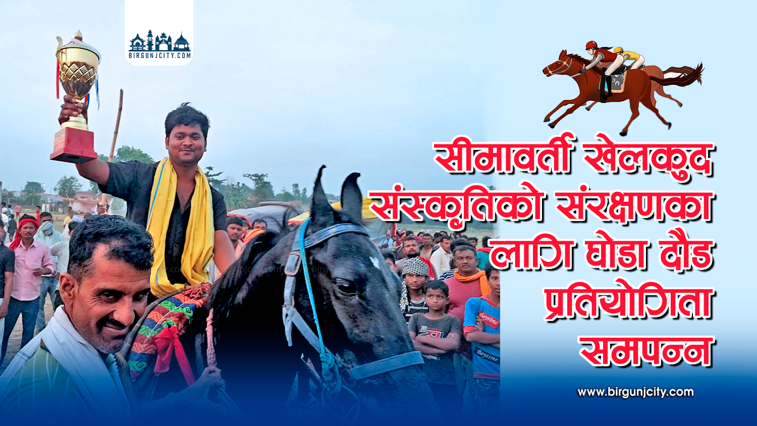 परम्परागत र लोपोन्मुख हुँदै गइरहेका सीमावर्ती खेलकुद संस्कृतिको संरक्षण तथा प्रवर्द्धन गर्ने उदेश्यले वीरगंजकाे नगवामा घोडा दौड प्रतियोगिता भव्य रूपमा सम्पन्न भएको छ ।