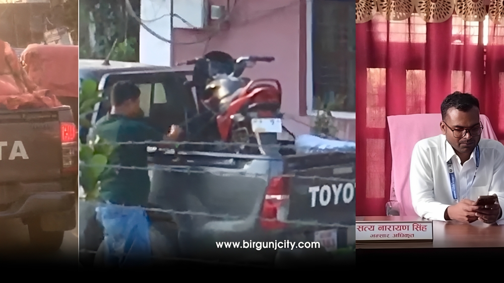 राजविराज भन्सार कार्यालयमा मिलेमतोमा सवारी साधन लिलाम गरिएको आरोप लागिरहेको बेला भन्सार प्रमुख सत्यनारायण सिंहले मोटरसाइकल ट्रलीमा लुकाएर लैजाँदै गरेको भिडियो सामाजिक सञ्जालमा भाइरल भएको छ ।
