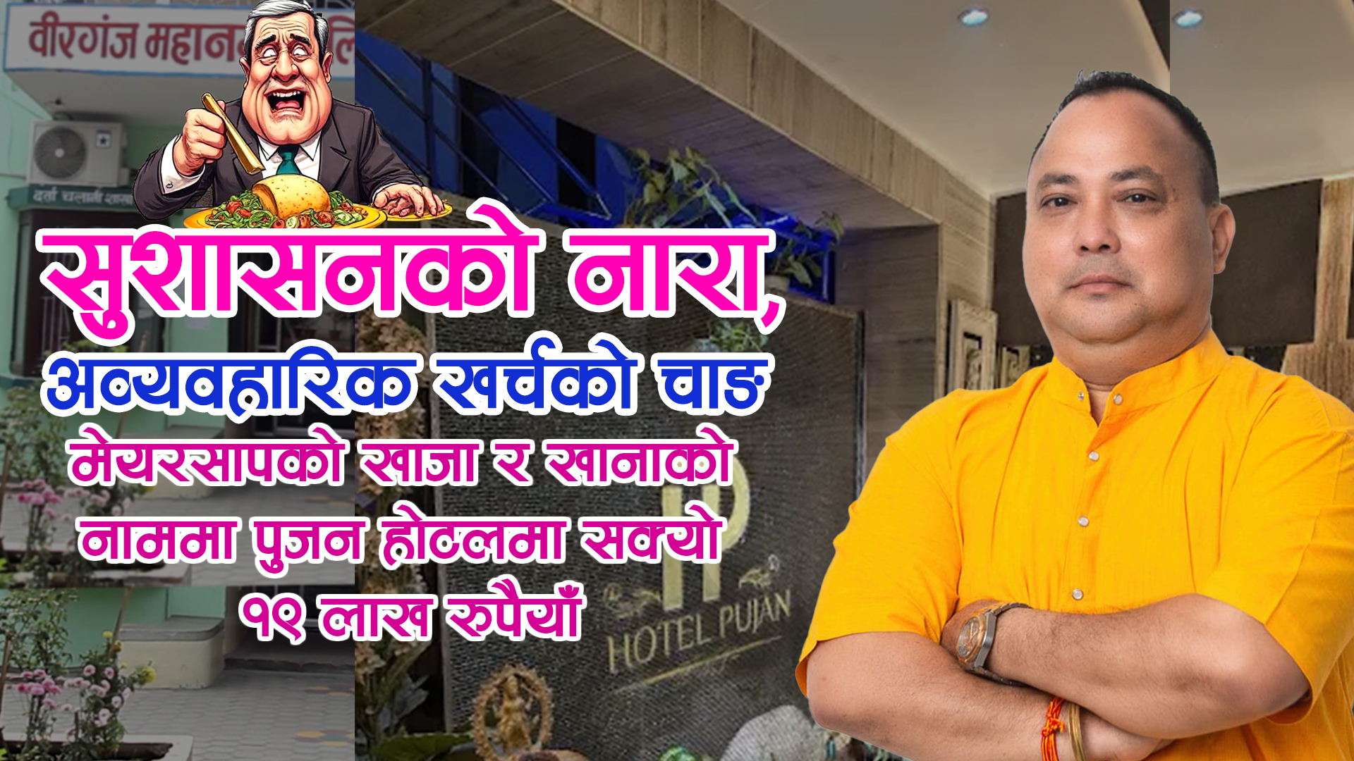 वीरगंज महानगरपालिकाका मेयर राजेशमान सिंहले आर्थिक वर्ष २०८०/८१ मा पुजन होटलबाट मात्र १९ लाख रुपैयाँभन्दा बढीको खाना र खाजा खाएका छन् ।