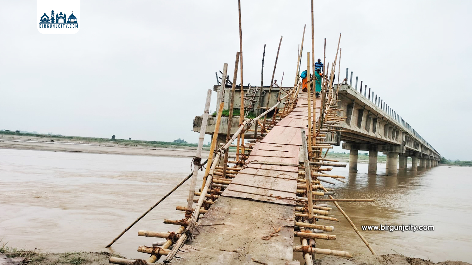 पुल निर्माणको जिम्मा पहिले पप्पु–लुम्बिनी जेभीलाई दिइएको थियो । पप्पु कन्स्ट्रक्सन कालोसूचीमा परेपछि बाँकी काम लुम्बिनी बिल्डर्सले गर्दै आएको हो । तर बाढीले दुई पाया भासिएपछि आवश्यक मर्मतका लागि आठ करोडको बिमा रकम नपाएको कारण देखाउँदै कम्पनीले पछिल्लो एक महिनादेखि काम रोकिदिएको छ ।