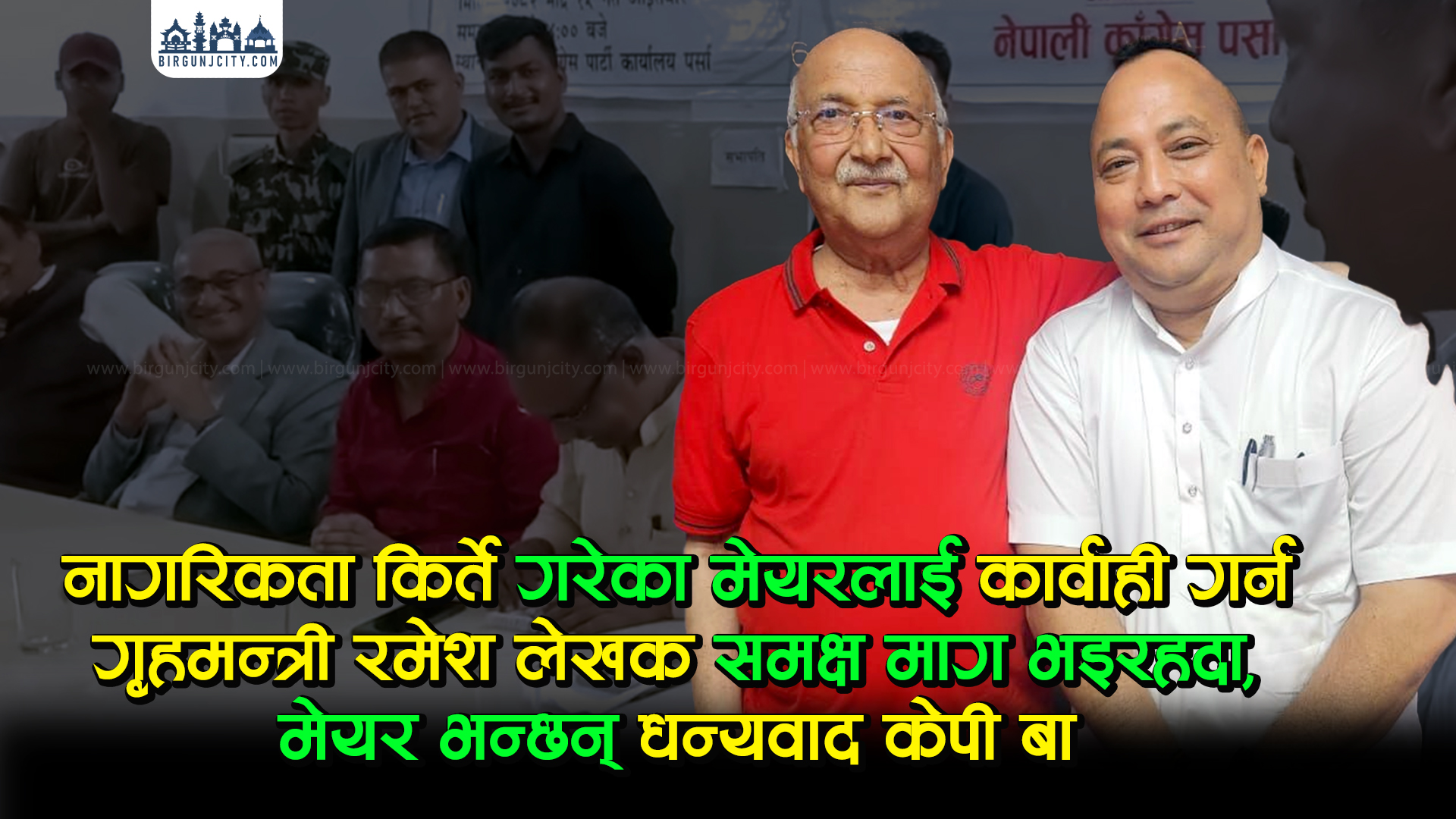 नेपाली कांग्रेस पार्टी कार्यालय, पर्सामा आइतबार गृहमन्त्री रमेश लेखकसँग आयोजित भेटघाट कार्यक्रममा कांग्रेस क्षेत्र नं. २ का क्षेत्रीय सभापति मोहम्मद साहबुदिन सहित नेताहरूले प्रश्न उठाउँदै, “सदनमा पटक–पटक सांसदहरूले कार्वाहीकाे मुद्दा उठाउँदा पनि किर्ते नागरिकता बनाउने मेयरविरुद्ध किन कारबाही हुन सकेको छैन ?” भन्दै गृहमन्त्रीलाई रयाक रयकक्ती पारेका थिए ।