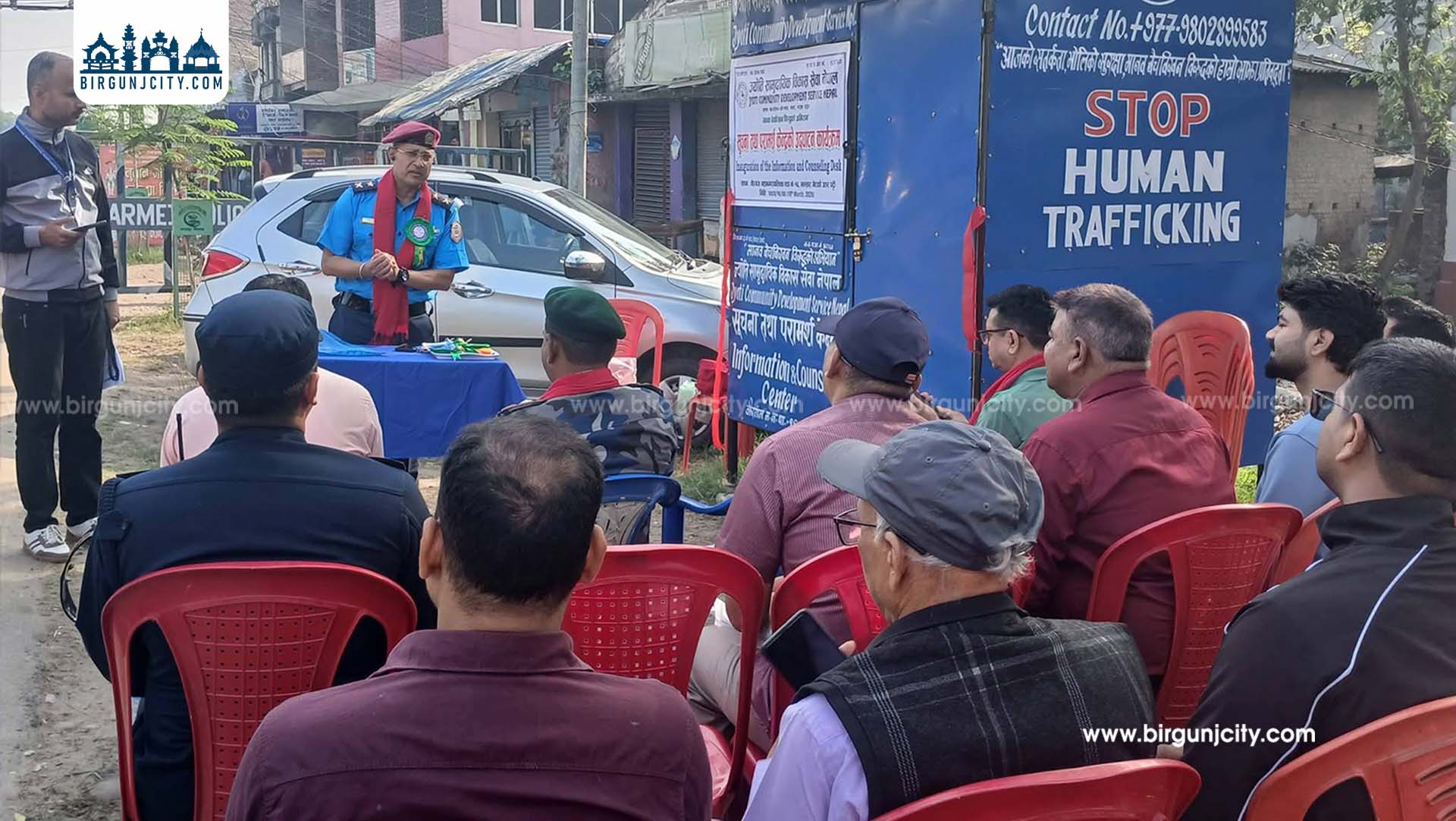 कार्यक्रममा विशिष्ट अतिथिका रूपमा जिल्ला प्रहरी कार्यालय पर्साका प्रहरी नायब उपरीक्षक राजु कार्कीले पर्सा सीमावर्ती जिल्ला भएकाले मानव बेचबिखनको उच्च जोखिममा रहेको औँल्याउँदै यसको नियन्त्रणका लागि सामूहिक प्रयास आवश्यक रहेको बताए। उनले सर्वसाधारणलाई कुनै पनि शंकास्पद गतिविधि वा घटनाको जानकारी तुरुन्त प्रहरीलाई दिन आग्रह गर्नुभयो ।